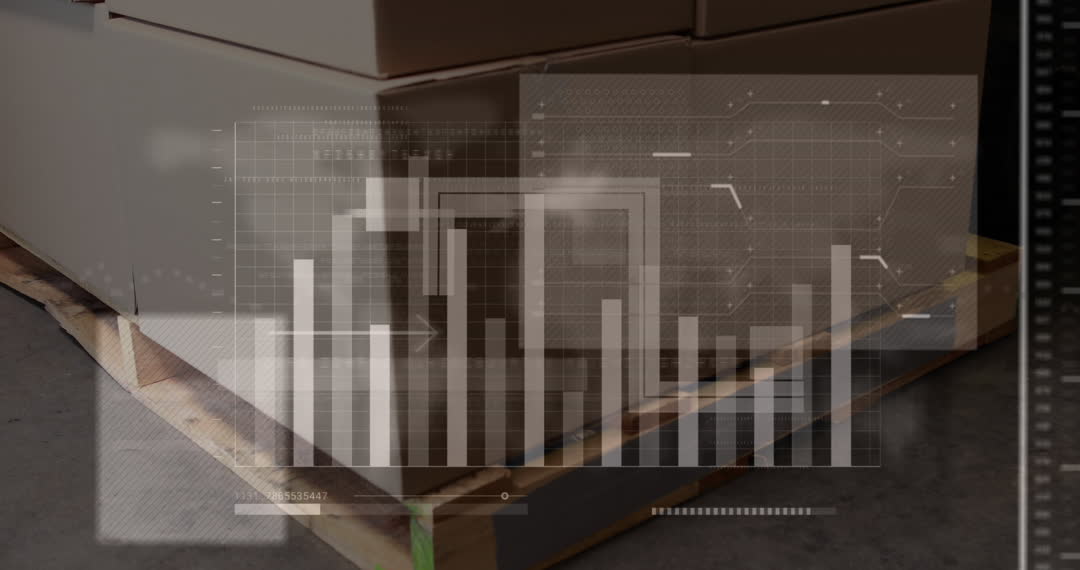 - Data Analysis Overlay on Warehouse Storage Boxes Visualizing Business Insights