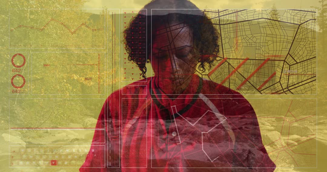 Data Analyst with Technology Overlay on Natural Landscape Video
