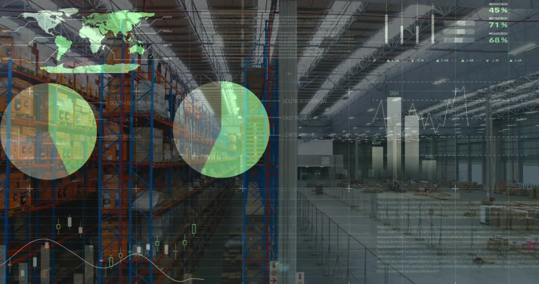 Highlighting integration of financial data with warehousing and logistics, this video emphasizes technological advancements in managing global trade and business expansion. Useful for illustrating concepts related to efficiency, forecasting logistics, and economic impact on supply chains in business and financial reports or presentations.