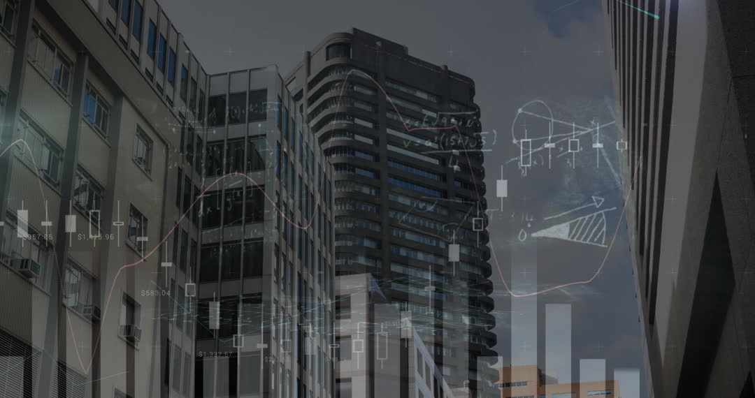 Urban cityscape overlaid with digital graphs and data analytics interfaces, symbolizing technology integration into urban planning and business growth. Suitable for illustrating topics in smart cities, digital transformation, financial markets, and technology-driven policies. Useful in presentations or articles about global collaborations in technological advances and economic development.