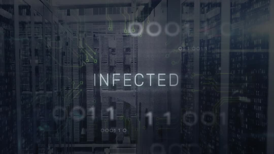 Binary code text 'Infected' in atmosphere portrays exclusive danger visualization, relevant for cybersecurity discussions, online vulnerability backdrop, or tech alert highlight scenarios concerning hacking, and network safety ensuring steadfast cyberspace resilience.