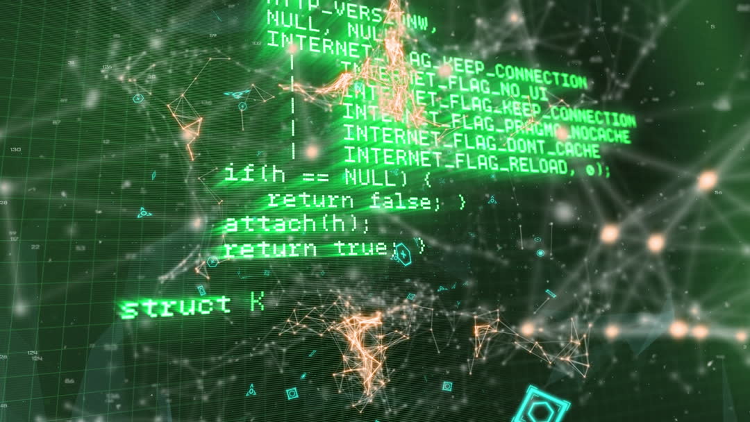 Visual embodies digital security aspect, showcasing dynamic programming code overlay on background. Highlights appeal in network technology presentations, cybersecurity concepts, and educational demonstrations on data integrity and internet technologies. Suitable for computer science themed content.