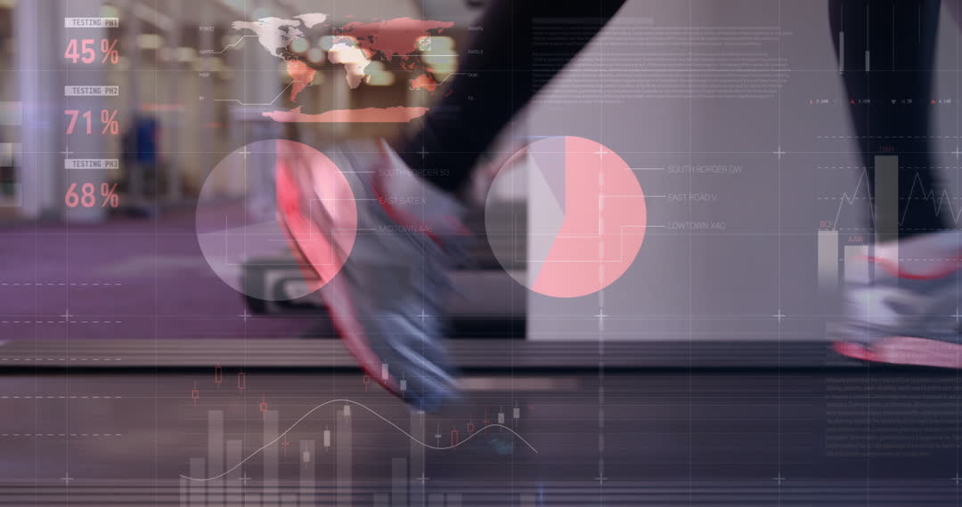 Digital data overlays merge science and fitness, perfect for illustrating modern athlete training processes and technological integration. Explores performance measurement and progression workflow, vital for sports analytics presentations.