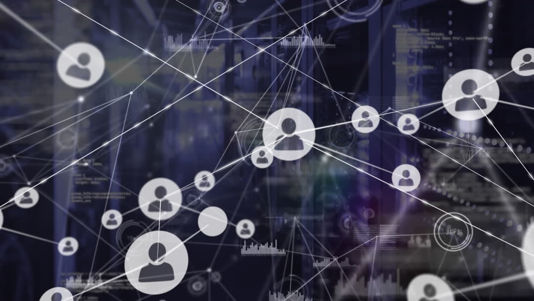 This video illustrates a conceptual digital network with interconnected icons and data visuals overlaying a server room. It conveys themes of information flow, technology, and communication, appealing to tech-focused presentations, digital innovation articles, or information technology marketing. Ideal for emphasizing connectivity and the pulse of modern data exchange industries.