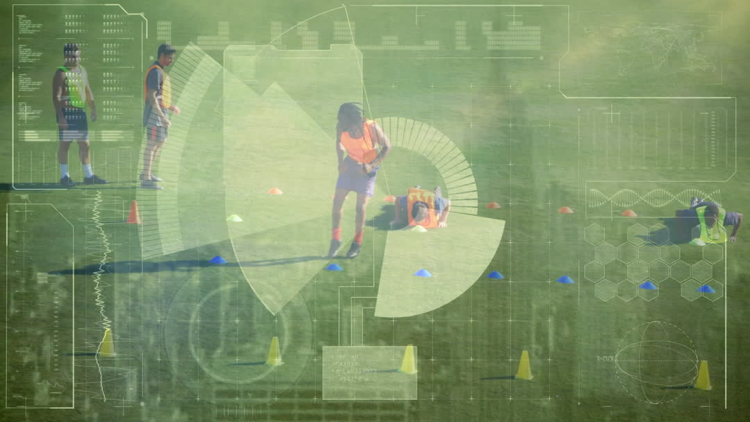 Data Overlays Analysis Soccer Training Field Athletes Video