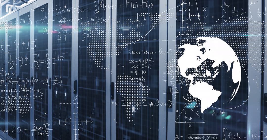 Animation shows data processing in server rooms with global business interface visuals. Use for concepts like digital transformation, data management, and IT infrastructure innovations in tech and business presentations.