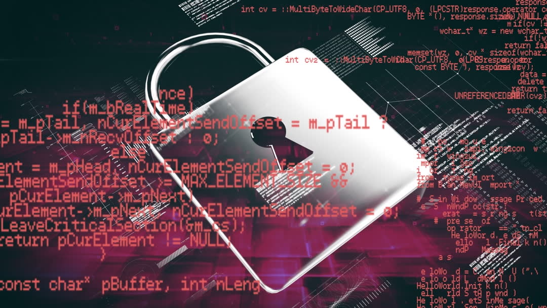 Visual showcases an animated padlock overlapping code text in a digital environment, embodying themes of cybersecurity and data protection. Suitable for use in articles, presentations, or websites related to IT security, network safety, or data privacy. Ideal for conveying security solutions and cyber defense strategies visually.