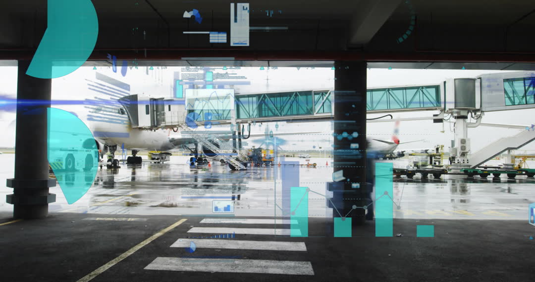 - Data Visualization Overlay at Airport with Airplane and Jet Bridge