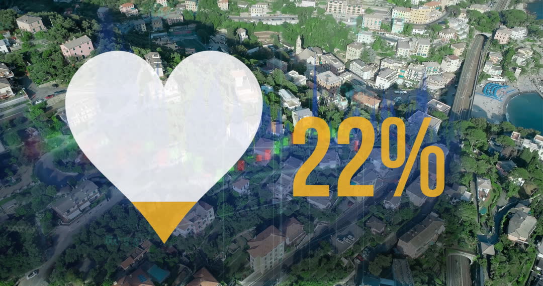 Data Visualization Overlay Cityscape with Heart Graphic and Percentage Video