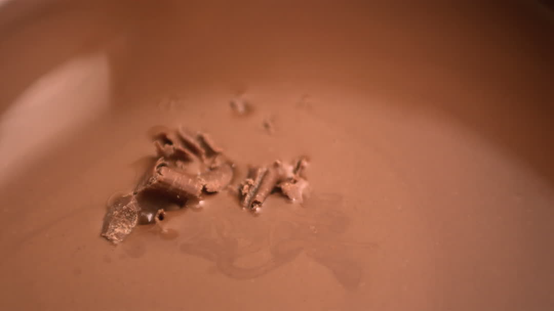 - Delicious Chocolate Flakes Falling into Smooth Melted Chocolate
