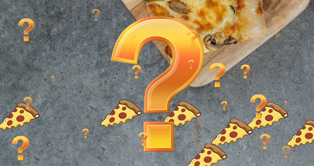 - Delicious Mystery Unfolds with Question Marks and Pizza Icons Overlay