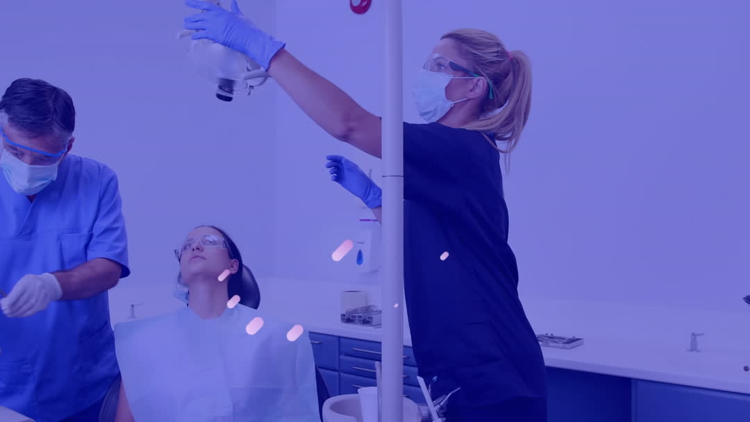 Dentists Preparing Patient for Dental Procedure with Digital Overlay Video