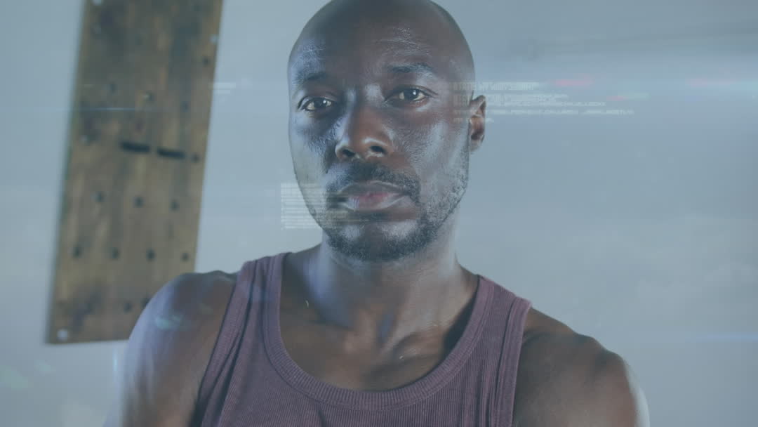 - Determined African American Athlete with Futuristic Data Animation