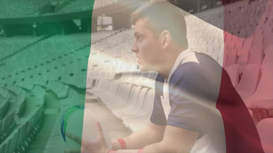 Determined Rugby Player Overlayed with Italian Flag Video