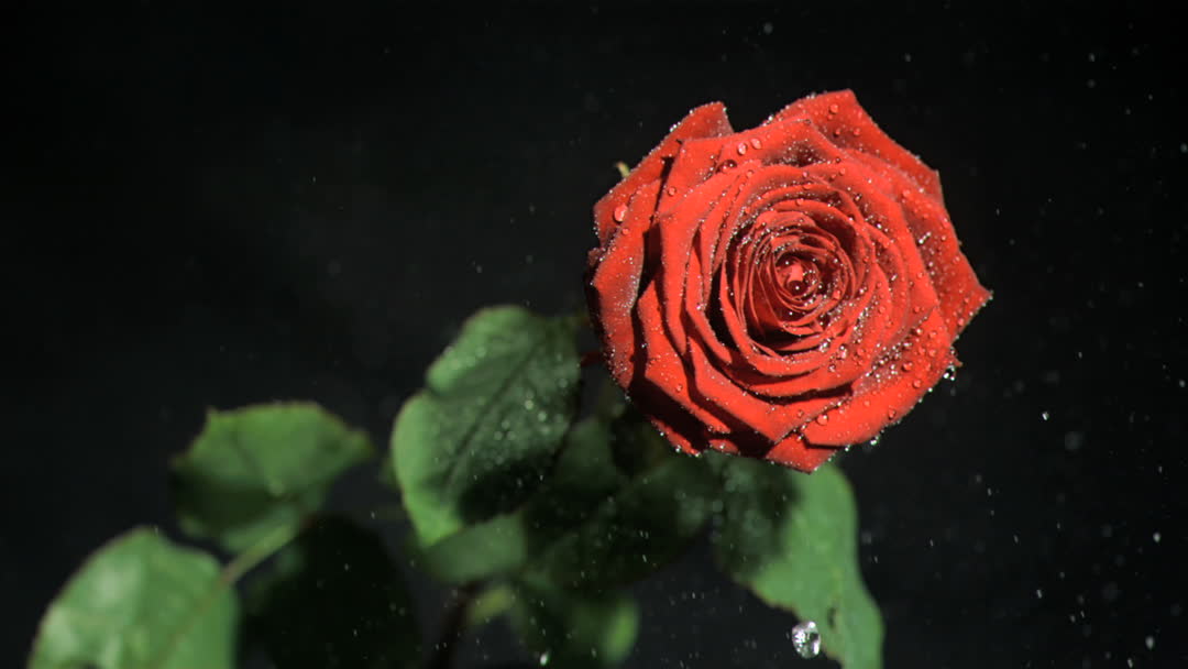 Dewy Red Rose Captured in Slow Motion Video