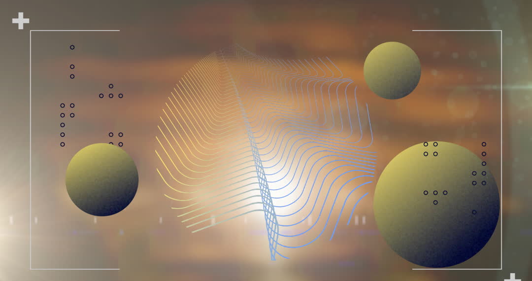 Artwork features dynamic geometric shapes including spheres and lines moving over a luminous background, creating a futuristic and innovative atmosphere. Suitable for use in digital media, web design, technology presentations, or as a creative accent in art projects focusing on modern themes.