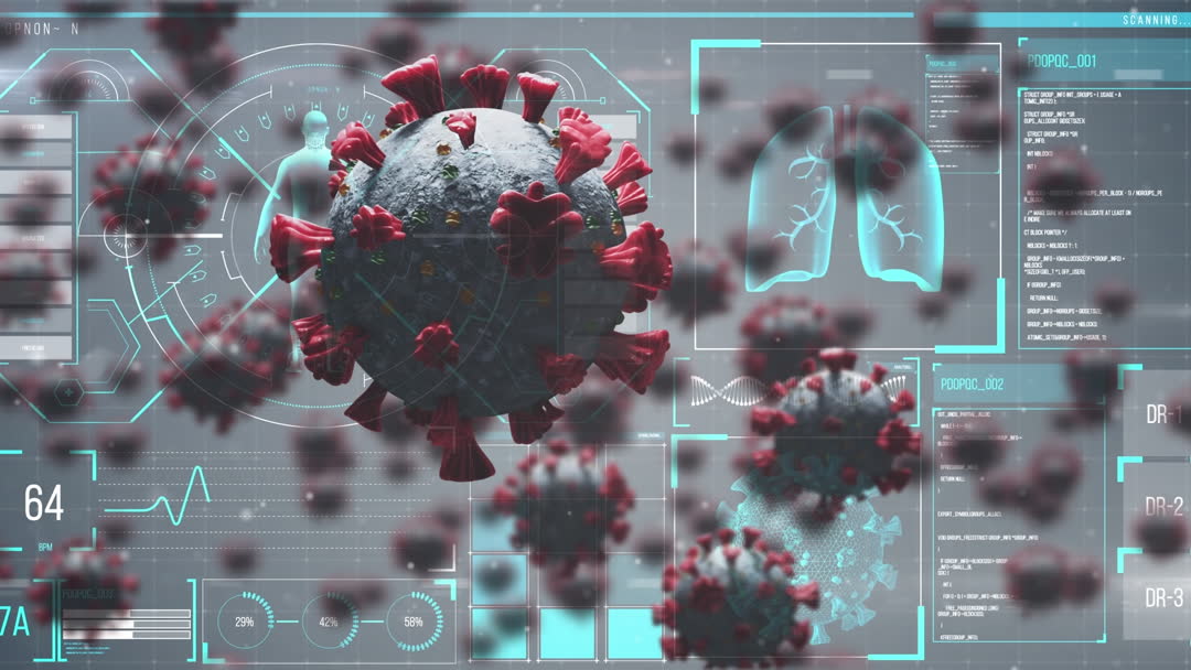 Digital Analysis of COVID-19 Virus Cells on Futuristic Interface Video