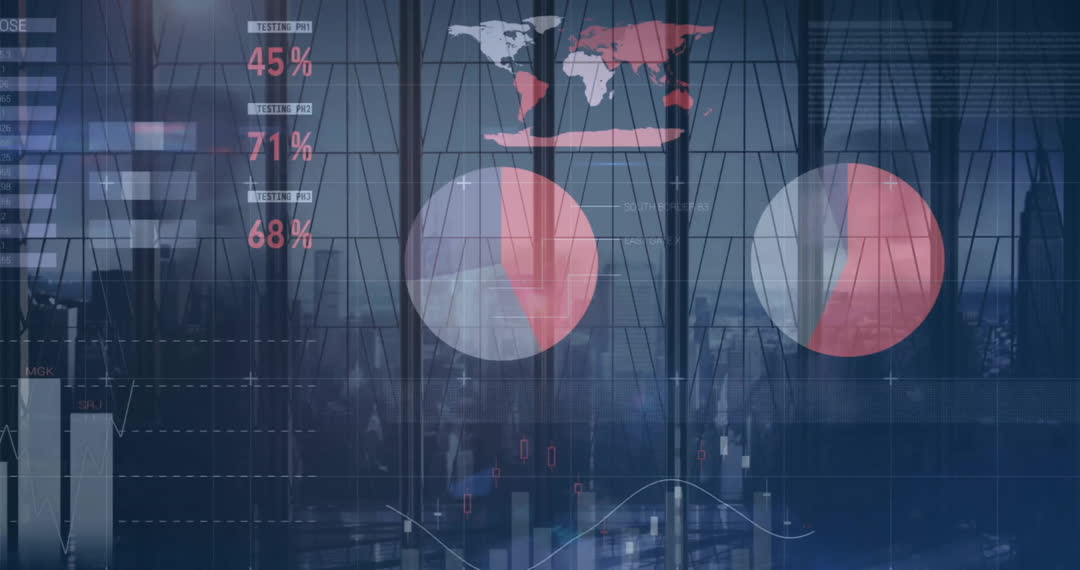 This dynamic background featuring data analytics and graphics overlay suits presentations or articles on business analytics, modern technology in the corporate world, and futuristic finance discussions. Ideal for illustrating the intersection of business strategy and digital transformation in marketing material.