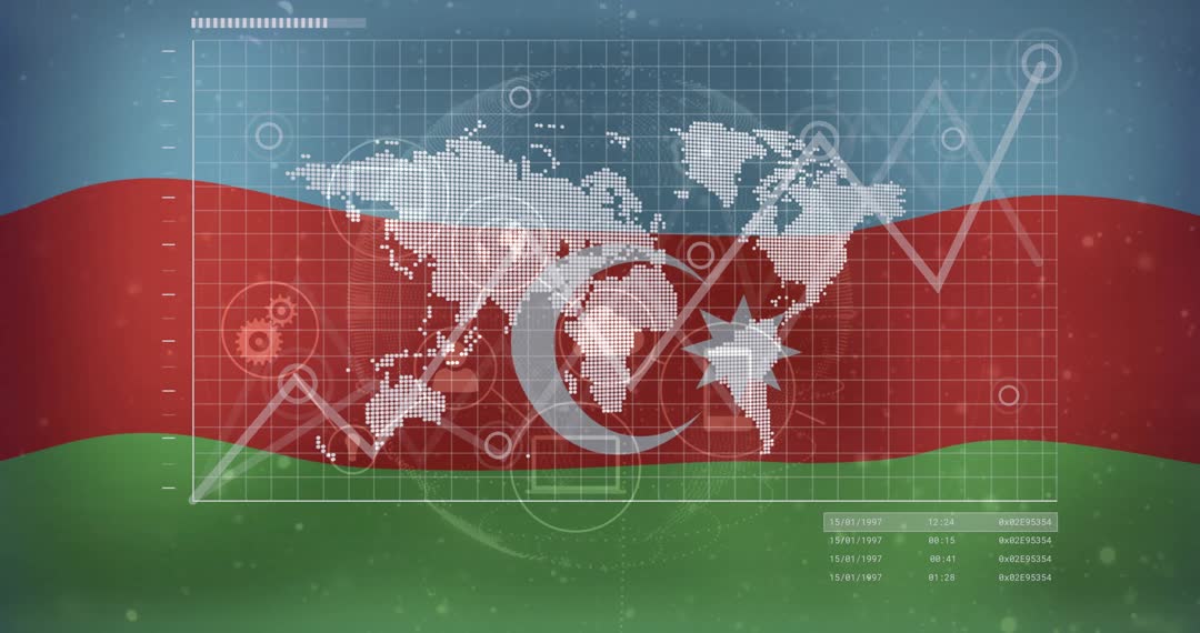 - Digital Analytics Overlay on Azerbaijani Flag with Global Map