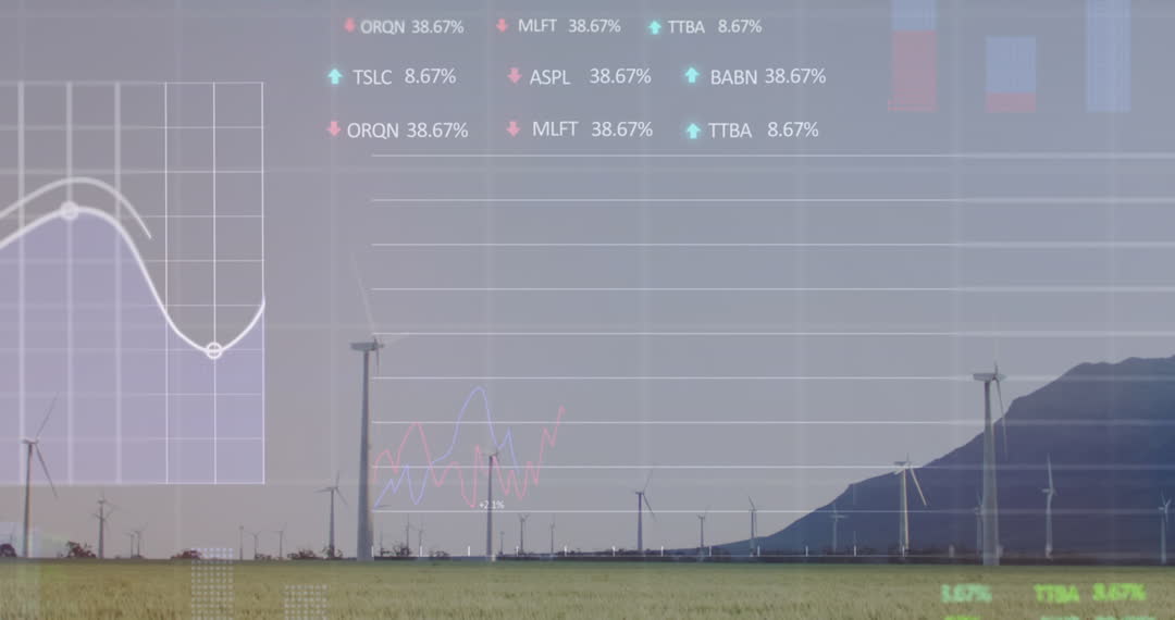 - Digital Analytics Overlay Wind Turbines Green Energy Concept