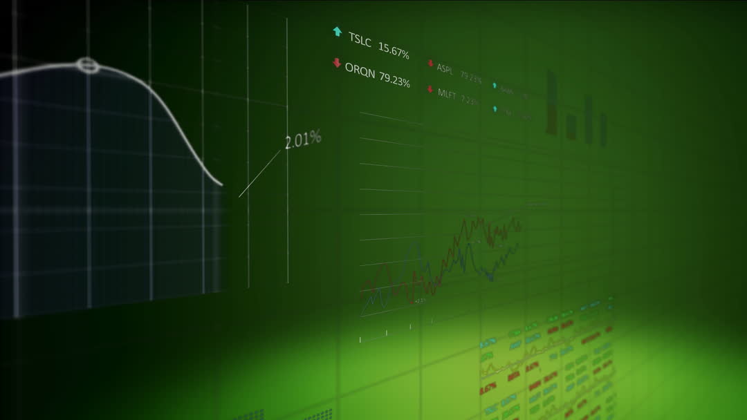 Digital animation illustrates the concept of data processing and financial analytics with dynamic visuals. Useful for presentations on global business solutions and market trend analysis.