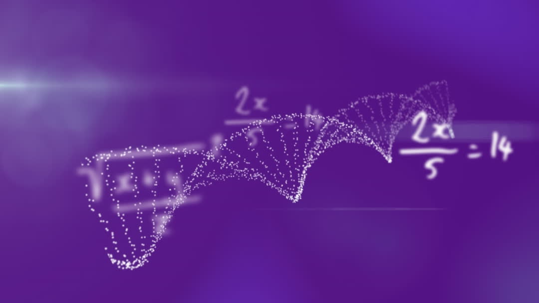 - Digital Animation of DNA Strand and Math Equations in Purple Background