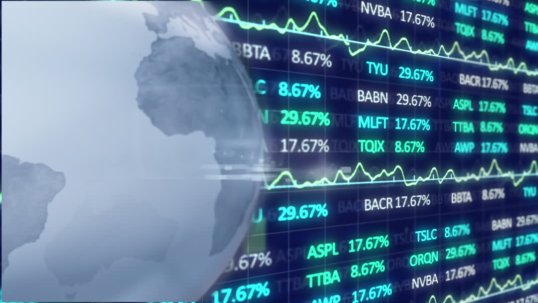 - Digital Animation of Financial Data with Spinning Globe Graphic