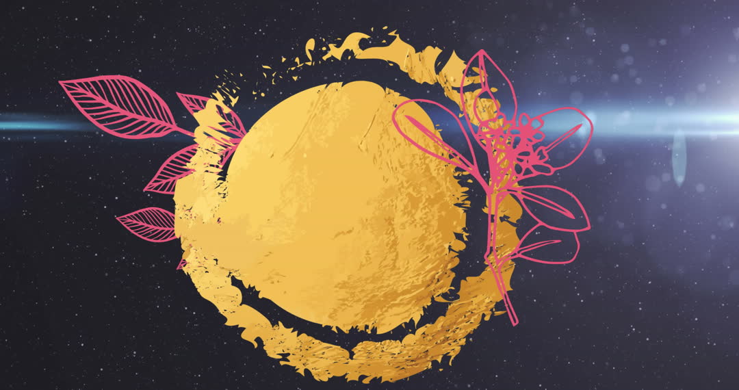 - Digital Animation of Gold Stamp with Floral Design on Cosmic Background