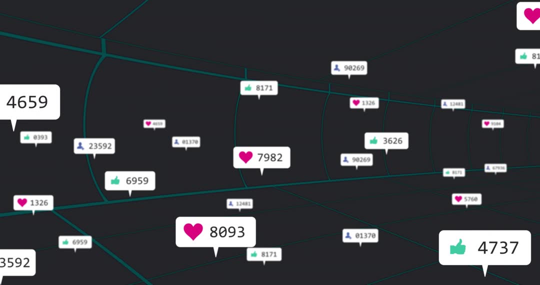 Digital Animation of Social Media Interaction Icons Overlaid on Grid Video