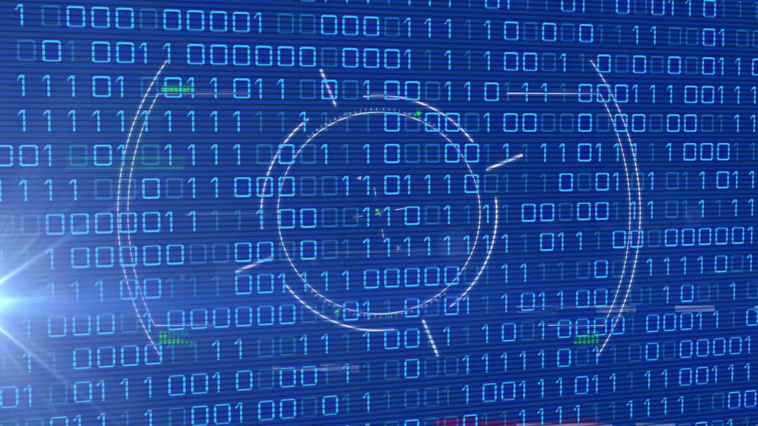 Digital Binary Matrix with Interactive HUD Circles Video