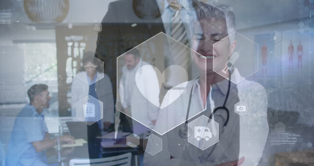 - Digital Blend of Healthcare and Business with Overlay Icons