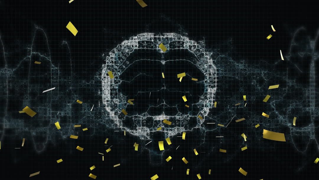 This visualization illustrates a digital brain surrounded by moving confetti particles, symbolizing the fusion of technology and creativity. Ideal for use in presentations about artificial intelligence, innovation, brainstorming sessions, or technology startups.