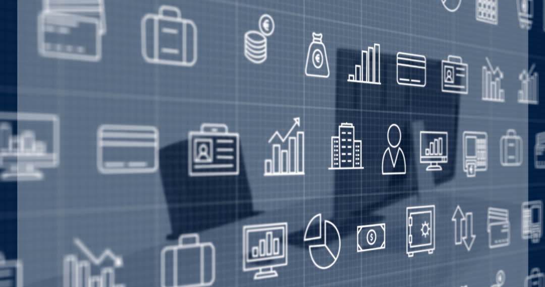 A collection of business-related icons and graphs overlaying an office blueprint, conveying digital transformation in modern businesses. Useful for representing technological advancements, digital interfaces, or business analytics in presentations or articles focusing on innovation in the business world.