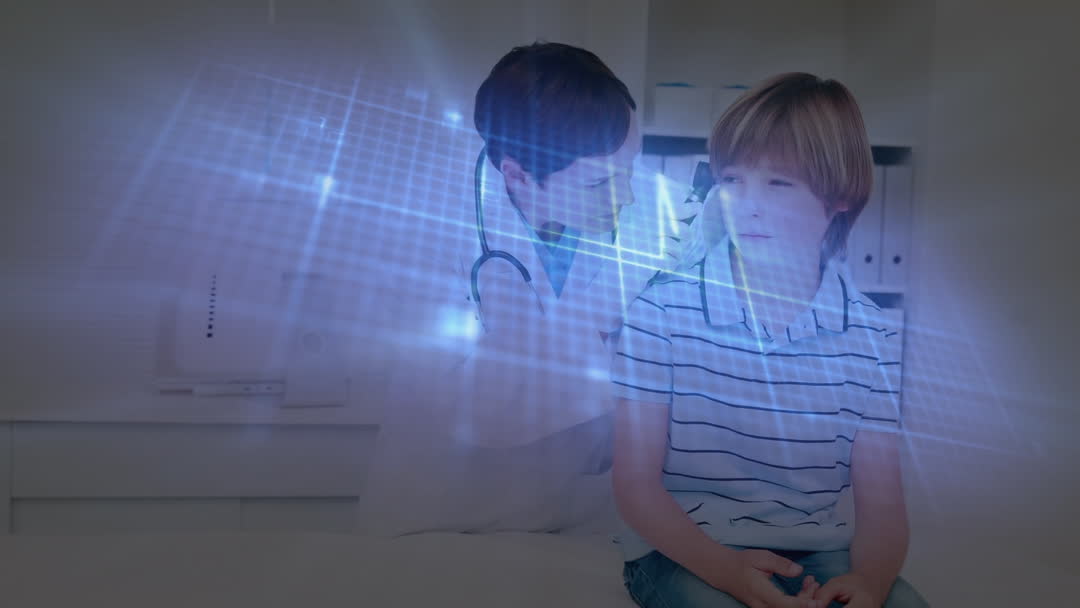 Digital Cardiogram Overlay on Doctor and Young Patient Video