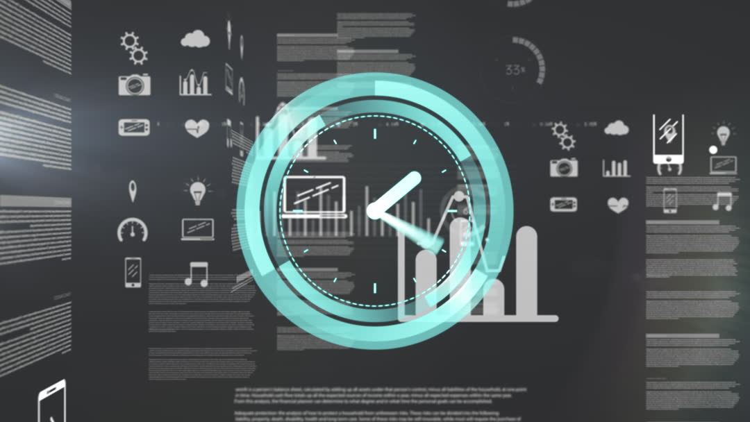 This video depicts a dynamic digital clock animation superimposed on various data processing elements, including graphs and charts. Ideal for illustrating concepts related to time management, advancements in digital interfaces, and their applications in business analytics and global business solutions. Useful for presentations, technology blogs, and articles focused on digital innovation and data science.