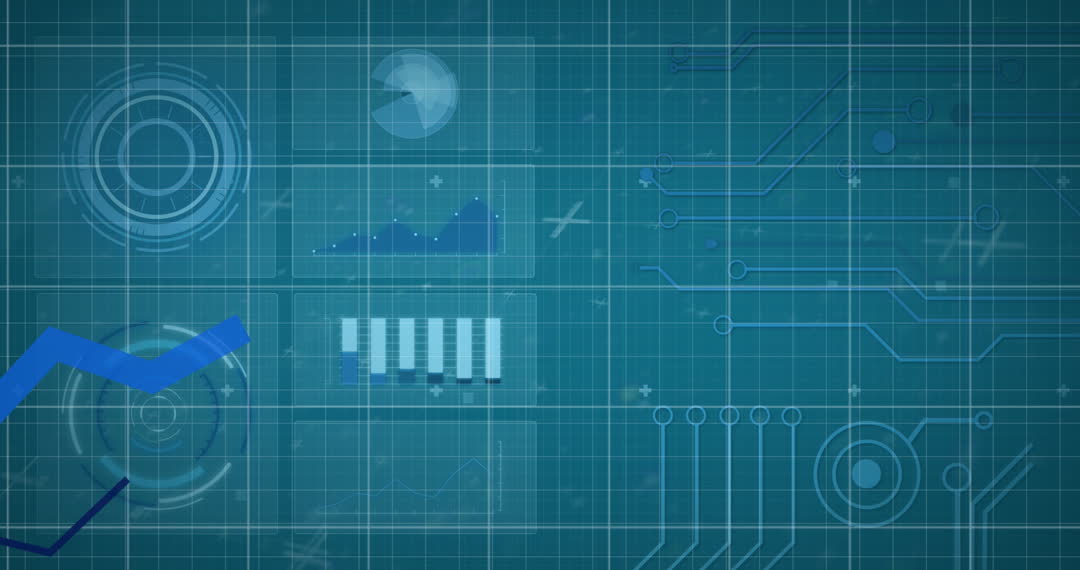 This futuristic design features a digital clock animation set against a backdrop of dynamic graphs and geometric patterns on a blue background. Ideal for illustrating concepts in technology, data analysis, or innovation, this animation can be used in presentations, videos, and marketing materials that focus on digital strategy or cutting-edge computing.