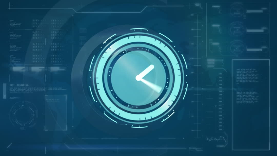 Digital Clock Overlay on Data Interface Symbolizing Speed Video