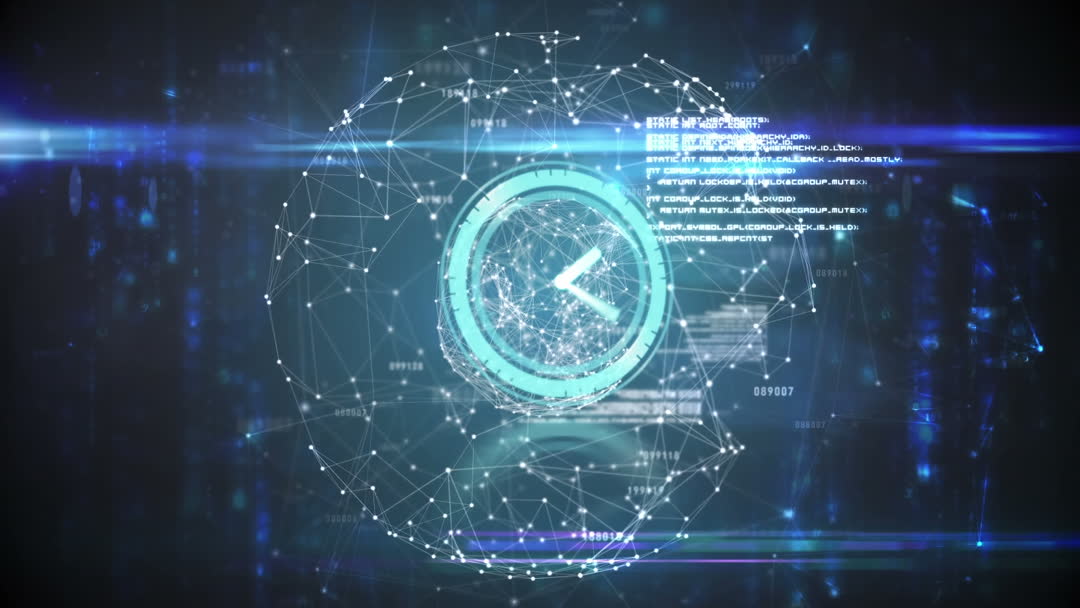 This visual displays a potent mix of technology and connectivity, featuring a fast-moving digital clock with data streams and a globe overlay. Cleary meant to engage global audience, possibly representing data processing or time-lapse mechanisms, it carries clear messages regarding technological advancement and global connectivity. Consider using this video in contexts discussing international business timings, tech development trade material, leveraging time in fintech operations or easily incorporable for websites, presentations, infographics favoring digital technology discussing urgency and innovation advancements globally.