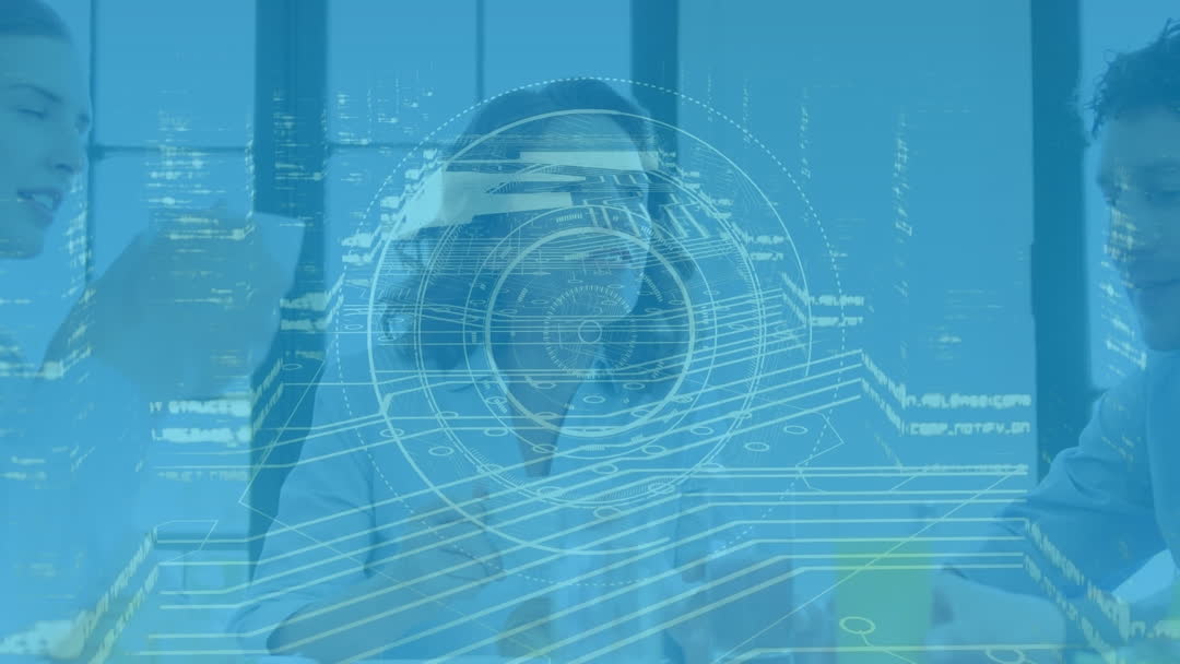Digital Collaboration with Futuristic Data Interface Overlay Video