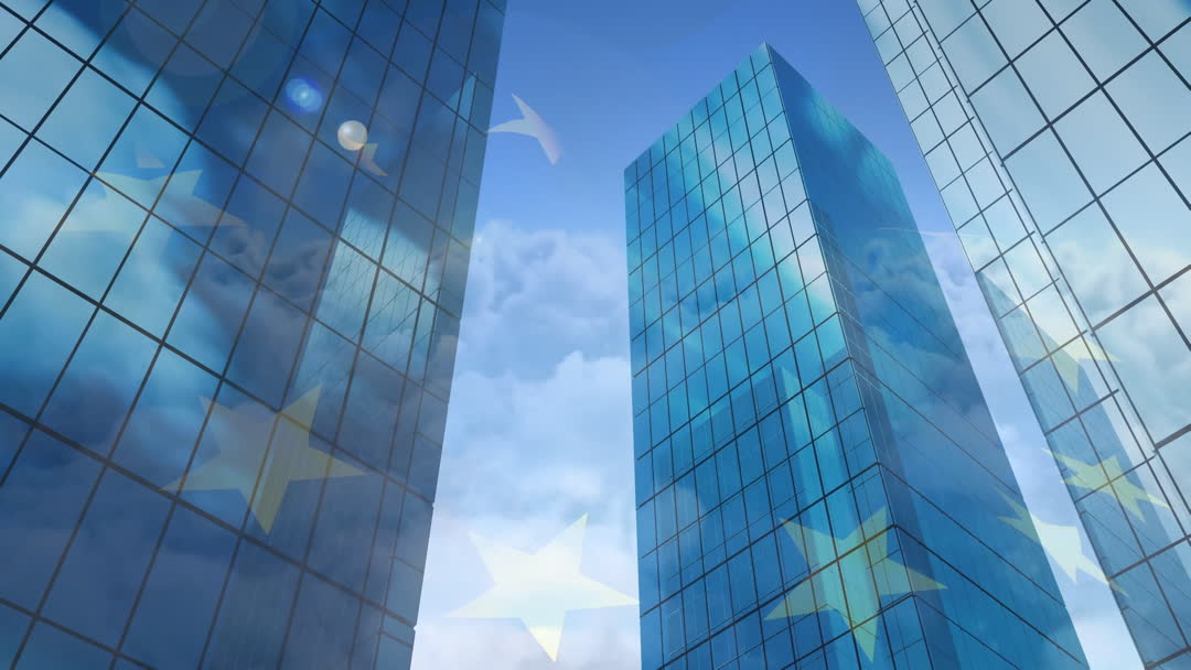 Modern blend of tall skyscrapers and symbolic handshake videory evokes the nexus of communication, business, and technology. The Euro stars suggest themes of European business. This is ideal for illustrating concepts of modern finance, business collaboration, and technological integration in company presentations, finance reports, or digital marketing content. Suitable for publications that discuss globalization or online business trends.