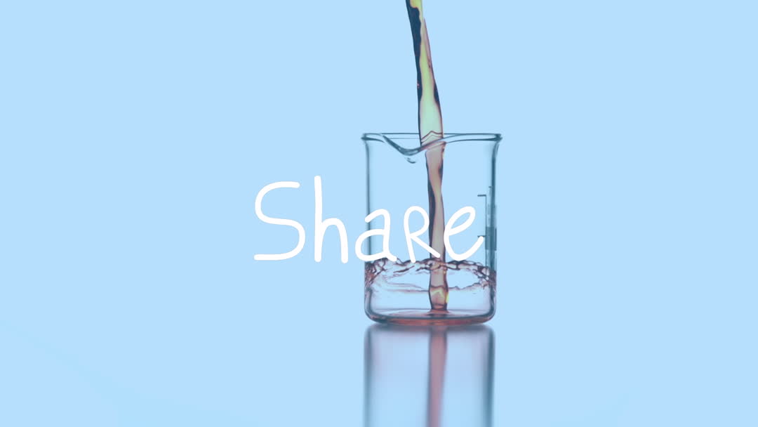 Laboratory beaker with liquid pouring reflects concept of data sharing in scientific context. Creative background for scientific presentations or communications. Useful for themes of innovation, digital interfaces, and collaborative science.