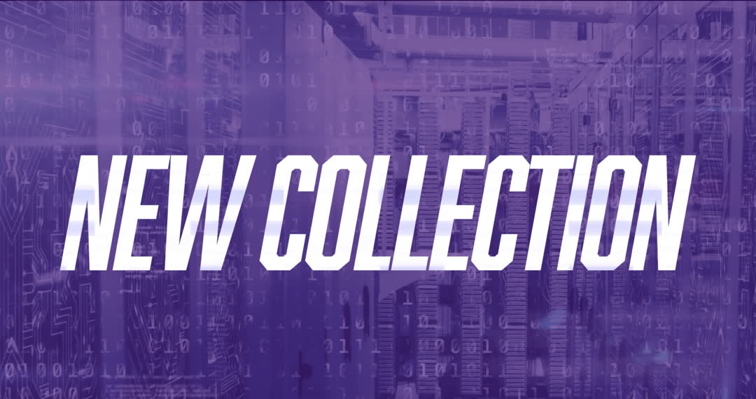 Bold 'New Collection' text, animated with a digital data center background, representing future-forward concepts and innovation. Useful for tech promotions, digital marketing, and trends in global technology or designing future-oriented graphics.