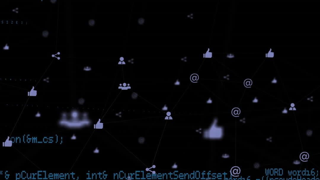 Conceptual visualization depicting a network of digital connections with icons such as like buttons and email symbols. Perfect for illustrating articles on social media networks, data-driven businesses, or global communication strategies. Ideal for technology-related presentations and digital interface projects.