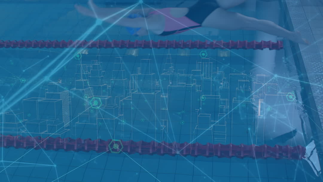 - Digital Connections Overlaying Swimmer in Olympic Pool