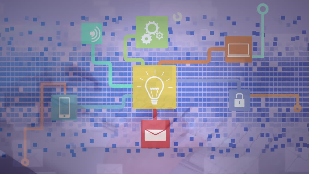 Dynamic representation of interconnected data flows using vivid icons. Great for illustrating concepts of modern technology, innovation, finance tech, and connectivity in business presentations or websites.