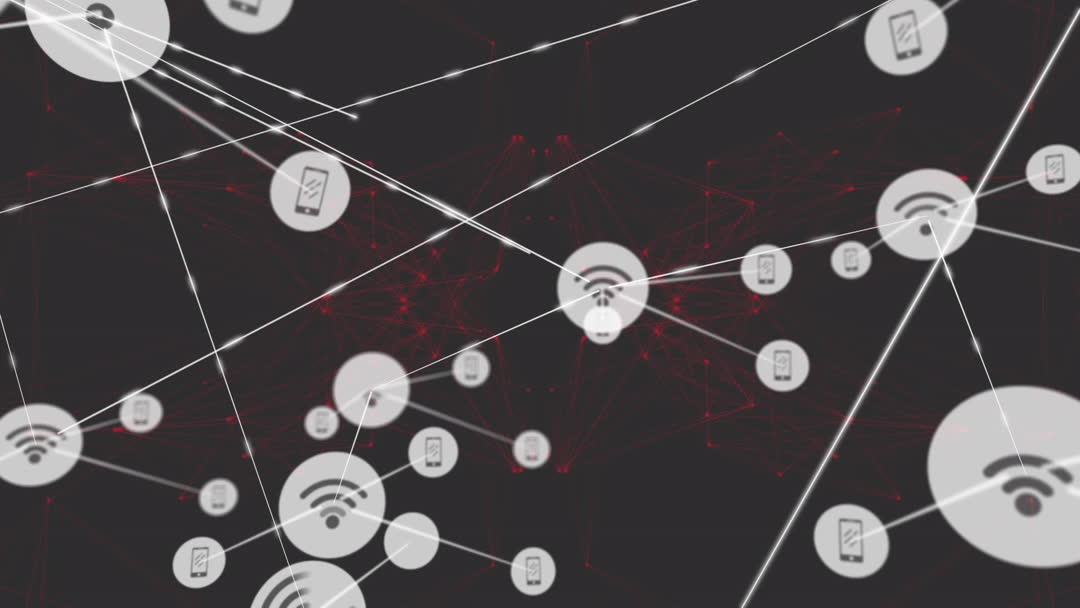 Abstract depiction of interconnected mobile and network icons generating the concept of a global connectivity solution. Ideal for technology blog illustration, business communication brochures, or presentations on data security and global networking infrastructure.