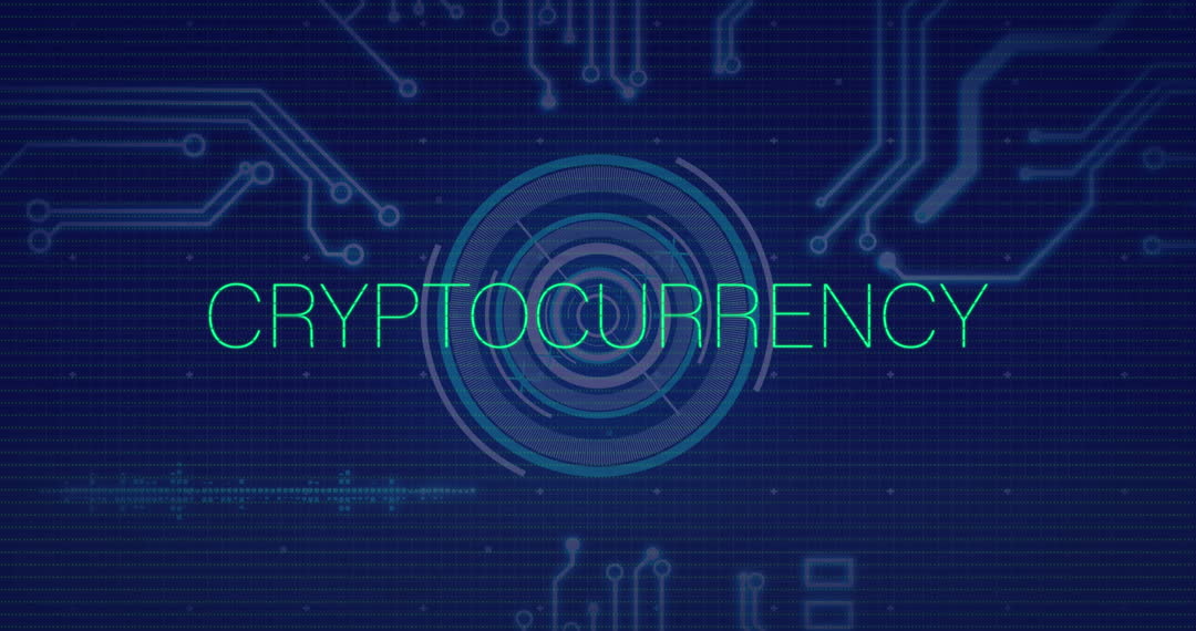 Illustration features text 'cryptocurrency' over a backdrop of a circuit board, symbolizing modern digital finance innovations and blockchain technology. Ideal for financial tech presentations, online courses on digital currencies, or articles about the digital economy.