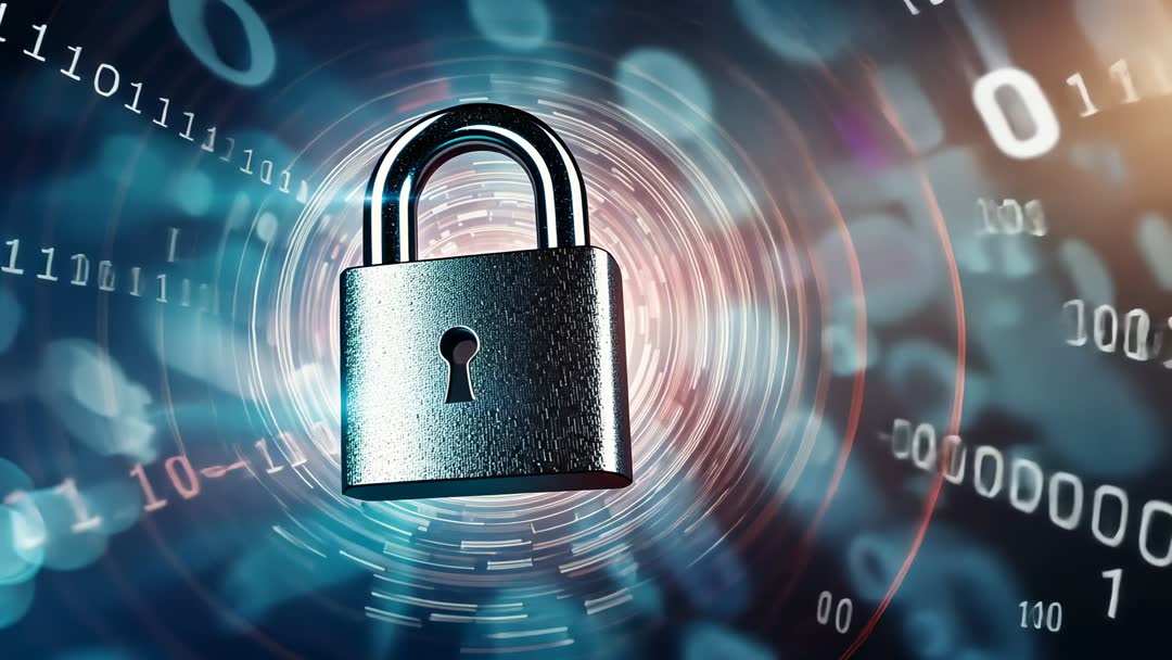 AI Generated Image. Video highlights cybersecurity concepts with a metallic padlock represented amid swirling binary code. This suggests a digital encryption and data protection theme, ideal for visual information about online security, network defense strategies, or illustrating concepts for educational and promotional materials in subjects such as technology and IT solutions.