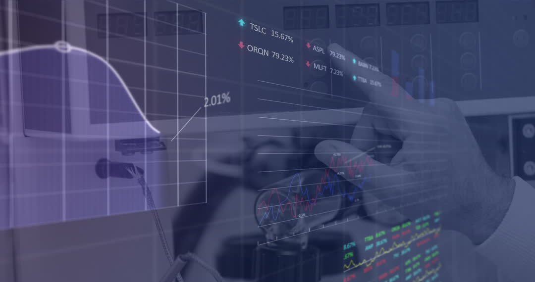 Abstract visualization of data analysis and statistics featuring a hand interacting with digital interfaces and graphs. Suitable for illustrating modern financial technologies, business presentations, innovation in data processing, and concepts of global technological connections.