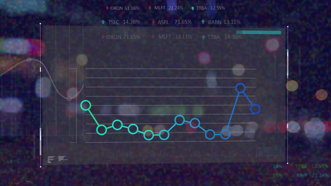 Dynamic visual of data charts and statistics over blurred streetlights, conveying modern technology themes. Useful for presentations on urban data use, economic analysis, or technological advances in society.